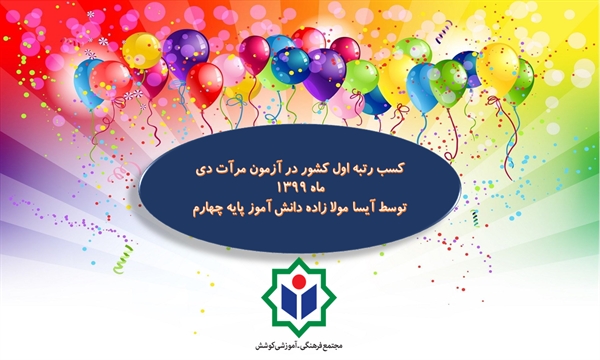 کسب رتبه اول کشور در آزمون مرآت دی ماه 99 توسط آیسا مولا زاده دانش آموز پایه چهارم