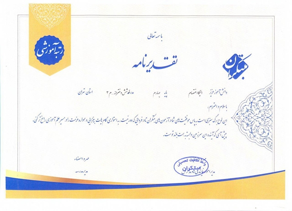 کسب رتبه اول دانش آموزی مرآت بهمن 97