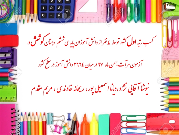 کسب رتبه اول کشور در آزمون مرآت آبان 97 توسط دانش آموزان پایه ششم
