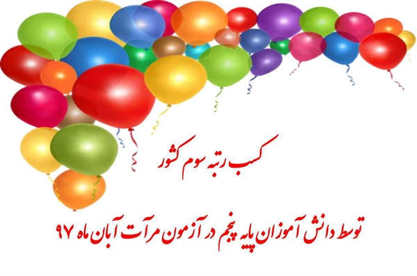 کسب رتبه سوم کشور در آزمون مرآت آبان 97 توسط دانش آموزان پایه پنجم