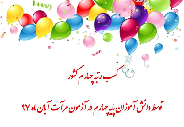 کسب رتبه چهارم کشور در آزمون مرآت آبان 97 توسط پایه چهارم