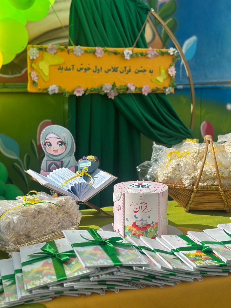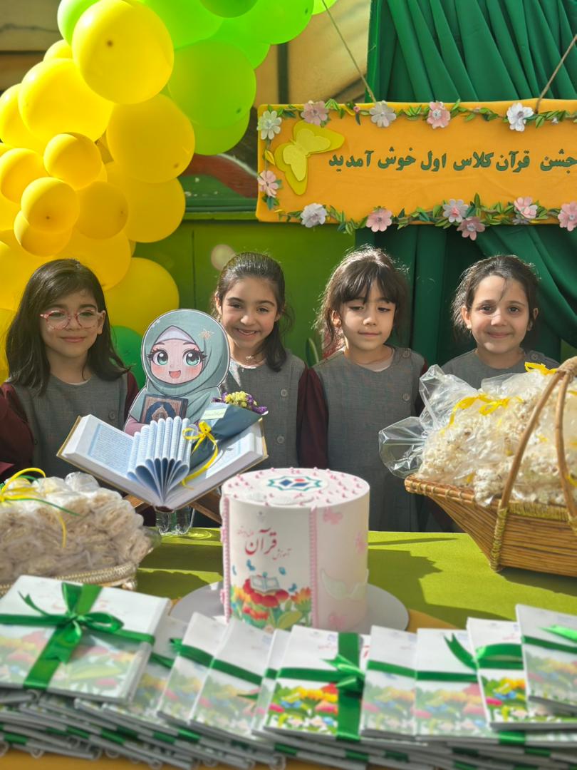 جشن قرآن مراسمی است که در هر سال تحصیلی برای کلاس اولی ها برگزار می شود و دانش آموزان با شور و شوق بسیار کتاب های قرآن خودشون رو دریافت می کنند. در این روز دانش آموزان یک دوستی تازه با قرآن شروع کردند؛ دوستی پر ازآرامش و مهربانی.این جشن لحطات شاد، متفاوت و به یاد ماندنی ای برای کلاس اولی ها رقم زد.