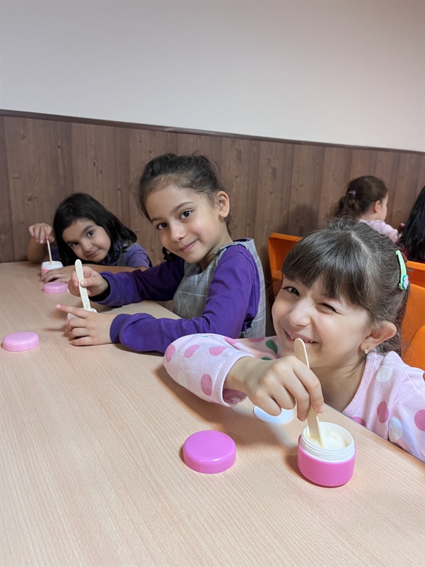 همچنین دختران پیش دبستان و پایه اول پروژه صابون سازی خود را به اتمام رساندند و با صابون و اجزای تشکیل دهنده صابون آشنا شدند.