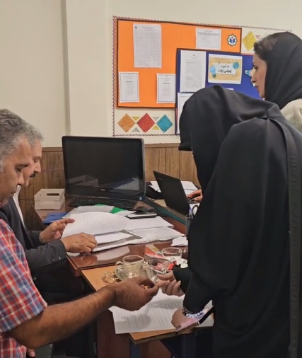 سایز گیری و تحویل لباس دانش آموزان عزیز و توضیحات کارسنج به والدین محترم و دانش آموزان.