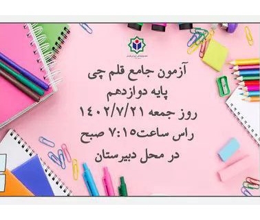 آزمون قلم چی۲۱ مهر فقط به صورت حضوری و در محل دبیرستان برگزار می گردد.