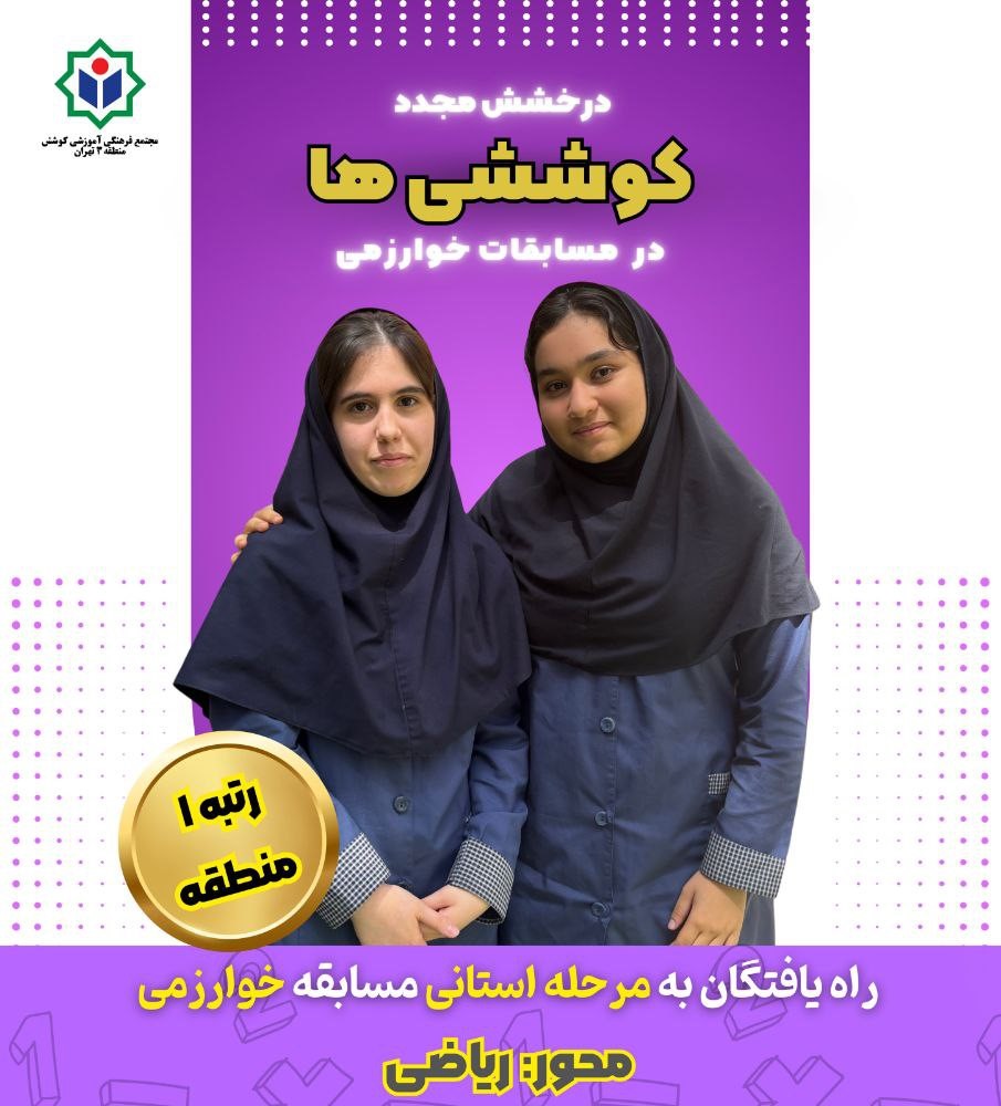 کسب رتبه اول در محور ریاضی‏ توسط مهدیس ربیع و کیانا پور ابراهیم